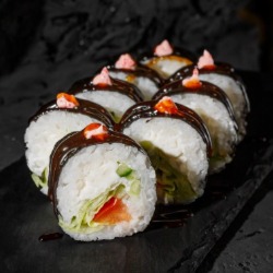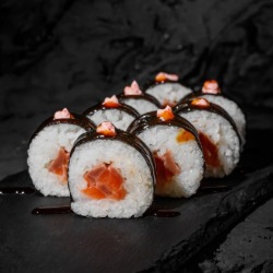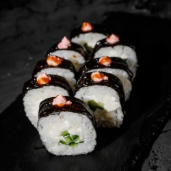 Состав: рис, сливочный сыр, лосось, нори, соус унаги 8 шт. 250 гр .